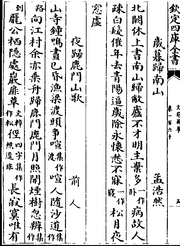 (路/)向江村余亦乘舟归鹿门鹿门月照开烟树忽辨(集/作)