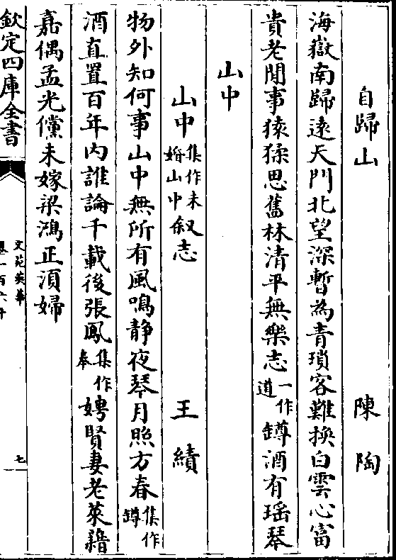 自归山 陈 陶海岳南归远天门北望深暂为青琐客难换白云心富