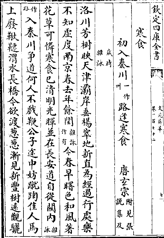 树连容卫山河对冕旒画旗摇浦溆春服满汀州仙籞龙媒下神皋凤跸留从今亿万岁天宝纪(集作/绍)春秋