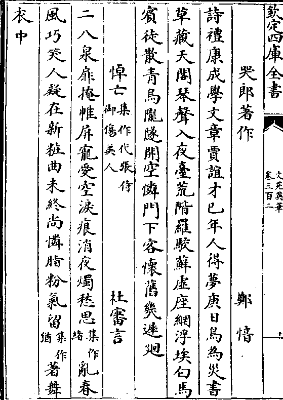 少(类聚/作小)妇当垆夜夫婿凯师(集作/归)年正歌千里曲翻入