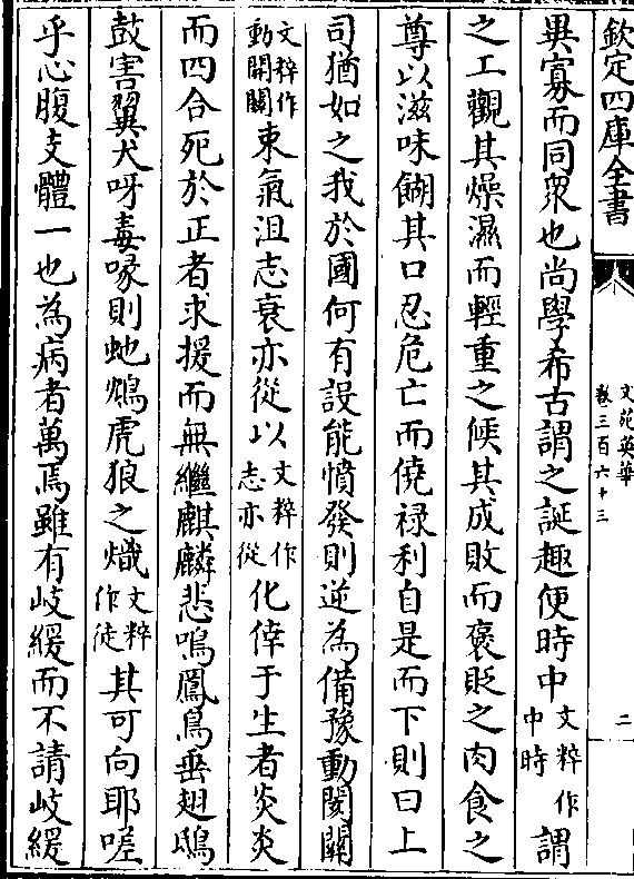 异寡而同众也尚学希古谓之诞趣便时中(文粹作/中时)谓之工观其燥湿而轻重之候其成败而褒贬之肉食之