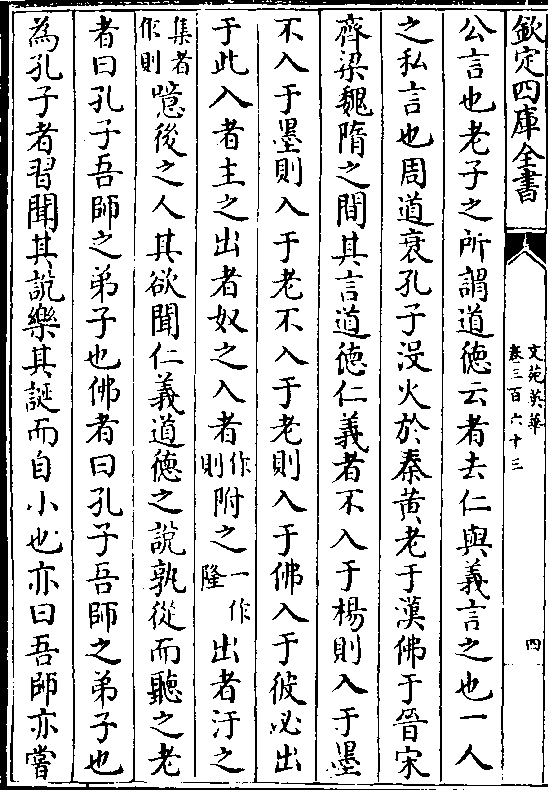 公言也老子之所谓道德云者去仁与义言之也一人之私言也周道衰孔子没火于秦黄老于汉佛于晋宋