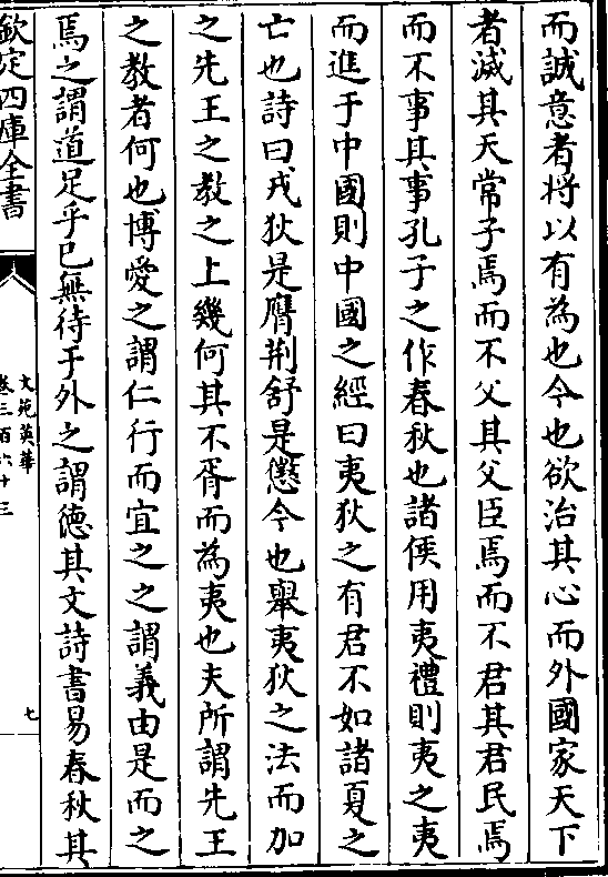 而诚意者将以有为也今也欲治其心而外国家天下者灭其天常子焉而不父其父臣焉而不君其君民焉