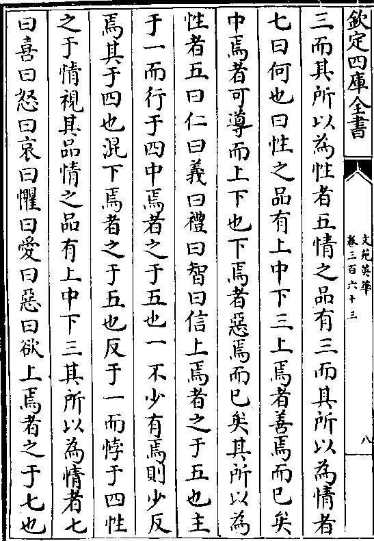 三而其所以为性者五情之品有三而其所以为情者七曰何也曰性之品有上中下三上焉者善焉而已矣