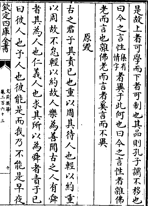 是故上者可学而下者可制也其品则孔子谓不移也曰今之言性(集有/情字)者异于此何也曰今之言性者杂佛