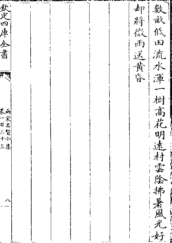 数亩低田流水浑一树高花明远村云阴拂暑风光好却将微雨送黄昏