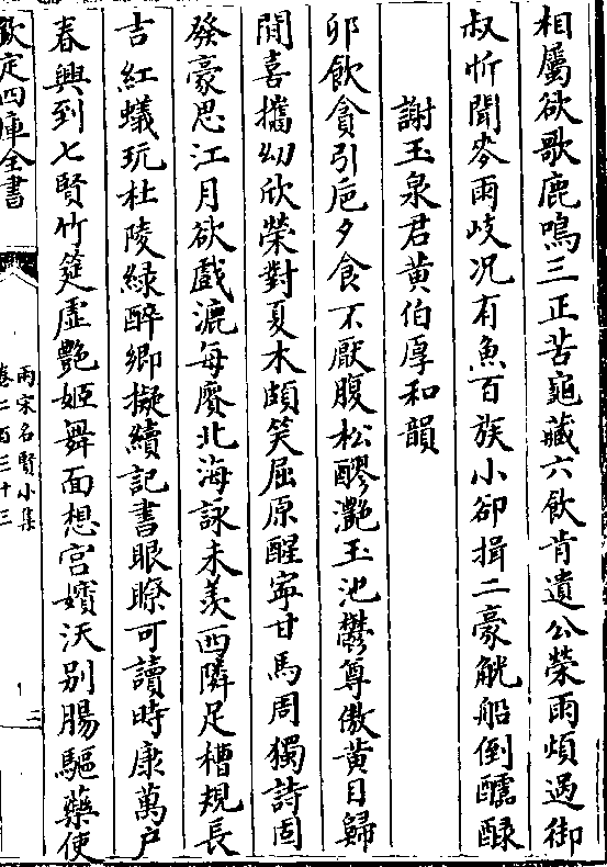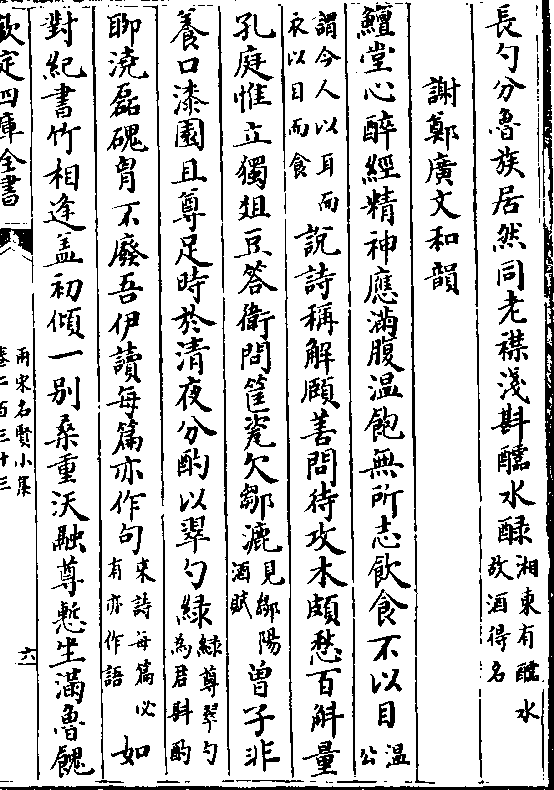 相属欲歌鹿鸣三正苦龟藏六饮肯遗公荣雨烦过御叔忻闻麦雨岐况有鱼百族小却揖二豪觥船倒醽醁
