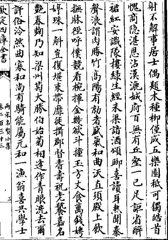 射不解事居士偶题木种柳仅成五乐园秪可独皓首愧商隐湛恩沾汉漉城府百无有丘壑一已足讵省醉