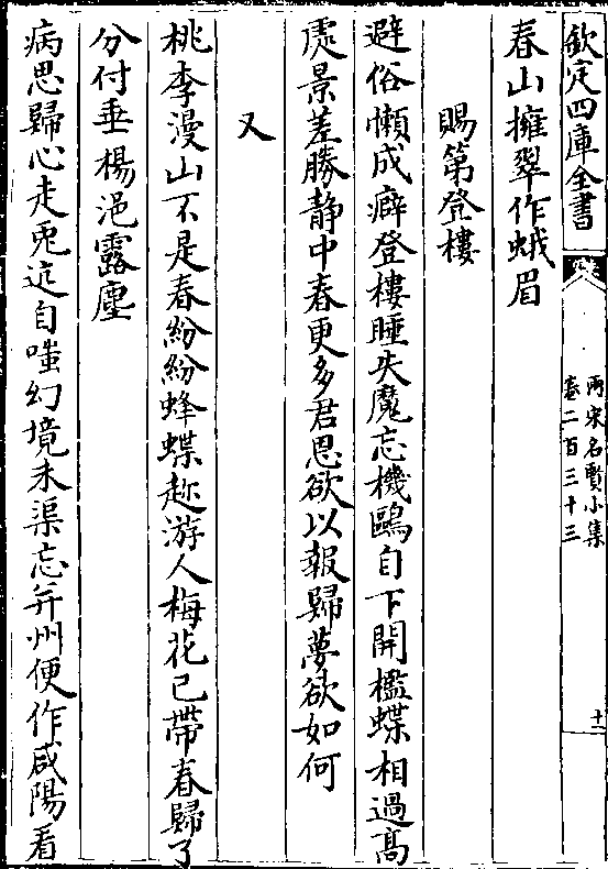 后蜂寻穴怀归燕语檐随阳在何处落絮点疏帘两宋名贤小集卷二百三十三