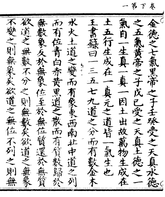 金德之七气黑帝之子壬癸受之天真水德之五气黄帝之子戊己受之天真土德之一