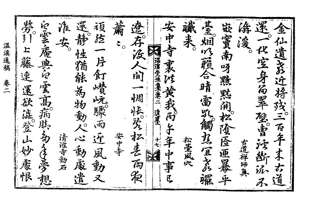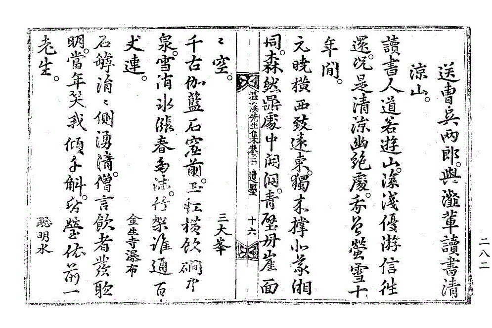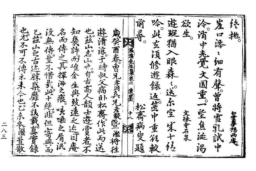 岁癸酉春。曹兄孝渊吴兄彦毅暨瀣将往游清凉。于时叔父病卧松斋。作此而送也。玆山。名山也。自古高人韵士游赏者。不知几许。而唯金生与致远之迹。因庵名而传之。其挥洒之痕。咳唾之屑。泯没无传。岂不惜哉。此十绝。非但寄兴而已。玆山之古迹胜概。靡不该载。真实录也。尤不可不传示来今也。乙未冬。瀣置散