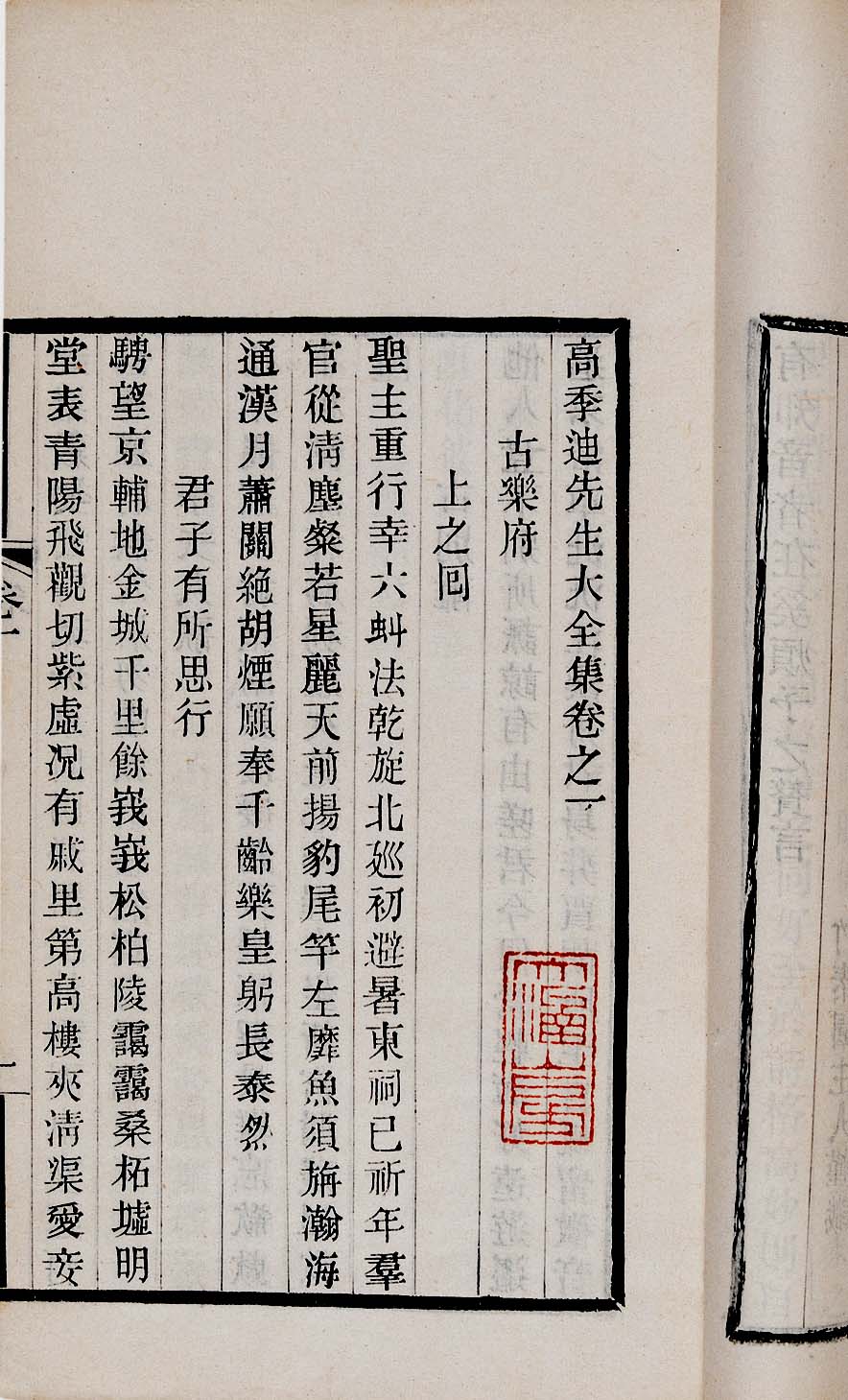 田按:季迪诸体并工,天才绝特,允为明三百年诗人称首,不止冠绝一时也。青田作《二鬼》诗,自负与潜溪并峙天壤,岂知江上有青丘子哉!季迪《青丘子歌》云:「青丘了,臒而清,本是五云阁下之仙卿。何年降谪在世间,向人不道姓与名。但好觅诗句,自吟自酬赓。朝吟忘其饥,暮吟散不平。当其苦吟时,兀兀如被酲。头发不暇栉,家事不及营。儿啼不知怜,客至不果迎。不惭被宽褐,不羡垂华缨。不问龙虎苦战斗,不管乌兔忙奔倾。向水际独坐,林中独行。斫元气,搜元精,造化万物难隐情,冥茫八极游心兵,坐令无象作有声。微如破悬虱,壮若屠长鲸。清同吸沆瀣,险比排峥嵘。霭霭睛云披,轧轧冻草萌。高攀天根探月窟,犀照牛渚万怪呈。妙意俄同鬼神会,佳景每与江山争。星虹助光气,烟露滋华英。听音谐韶乐,咀味得太羹。世间无物为我娱,自出金石相轰铿。」其自负亦复不浅。入史馆后骤擢户部侍郎,以不能理天下财赋力辞。盖亦有托而逃。观其京《师寓廨》诗云「拙宦危机远」,其志可见矣!迨夫魏守狱兴,牵连以死。旧游素交,同声哀悼。杨孟载诗云:「《鹦鹉》才高竟殒身,思君别我愈伤神。每怜四海无知己,顿觉中年少故人。祀托友生香稻糈,魂归丘陇杜鹃春。文章穹壤成何用?哽咽东风泪满巾。」徐幼文诗云:「昔别会有期,兹别渺无迹。茫茫堪舆间,飘然竟何适?旦暮凄以深,形影吊单只。惟馀瑶华言,和谐重金石。一读一怆情,老泪屡挥滴。」张来仪诗云:「平生五千卷,宁救此日艰。」又云:「中郎幼女今痴小,遗槁千篇付与谁?」浦长源诗云:「鼓罢瑶琴遂解形,萧萧日影下寒城。薄田供祭遗妻子,新冢题名望友生。地下未应消侠气,人间谁肯没诗名。旧庐重过悲闻笛,欲赋《招魂》竟不成。」玉碎昆仑,兰焚楚泽,千古才人,同声下泪矣。)