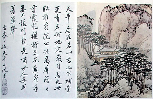 《王鏊震泽集》:石田作绘事,峰峦烟云,波涛花卉,乌兽虫鱼,莫不各极其态。或草草点缀,而意已足,成辄自题共上,时称二绝。
